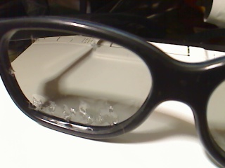 そういう訳で送られてきたフィルターで軽く実験してみた後、じゃあこっちでもいいんじゃないかとここで買った東急ハンズの偏光板と、ここで作ったメガネを引っぱり出して使ってみました。なんと問題無く「まっくろポール」可能です。おお、なんてこった。