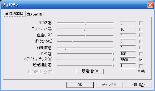 このプロパティ内の調整項目で実用的に使えるのは「ガンマ」ぐらいかな。後は補佐的に「コントラスト」がやや使えるぐらい。