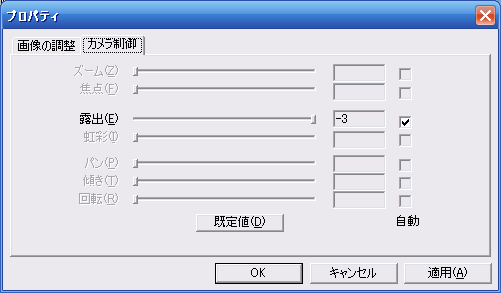 VideoProcAmp_Gainは相変わらずですが、CameraControl_Exposureはまともになってます。VideoProcAmp_Gainについては、それっぽい値を入れても以前と同様に反応無しです。封印されているようです。VideoProcAmp_WhiteBalanceも相変わらずマニュアル操作は不可。