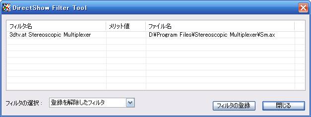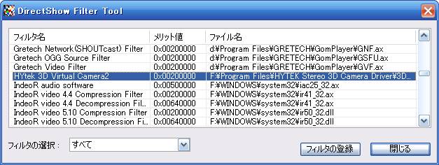 すると、登録されているDirectShow Filterの一覧が出てきます。
