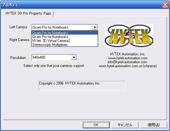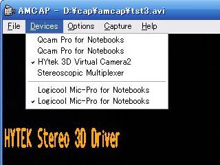 「HYtek 3D Virtual Camera2」というのがドライバで作成されたステレオwebカメラです。「Qcam Pro for Notebooks」を2台まとめた物です。「HYtek 3D Virtual Camera2」から「Qcam Pro for Notebooks」1台へ表示を切り替える事もできあます。なんかバーチャルですね。マイクデバイスはwebカメラの片方しか選択できません。これもマイクを2台分使ってバーチャルステレオマイクになったりしたら面白かったのですが、まあいいでしょう。