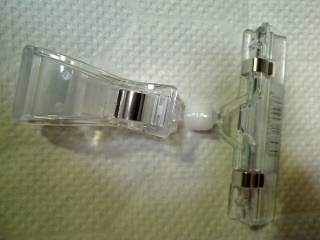 近所の島忠ホームセンターを物色してみたら、こんなものが有った。ヘッドがユニバーサルに動く巨大クリップ。280円。