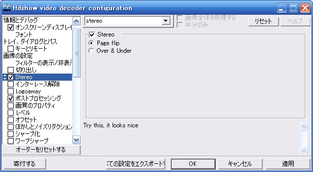 ソフトそのものは簡単に言うと改造版ffdshowです。ffdshowについてはこのへんの解説がいちばん分かりやすいかな?