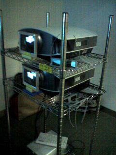 なんとハイビジョン液晶の裏の壁の向こう側にはハイビジョンプロジェクター2台を使った立体視システムが設置されていたのです。ソニーのプロジェクターVPL-VW50を2台使っています。合計140万です。こちらも偏光フィルターメガネで鑑賞。もろIMAX方式です。