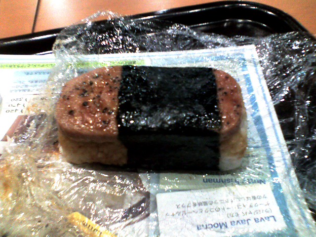 ごはんの上にしょうゆだれの付いたスパムが乗っている。ハワイなら珍しいかもしれないけど、日本なら家庭で簡単に再現可能な味だ。悪いものではなかったが、わざわざ外で食うほどの物ではない。