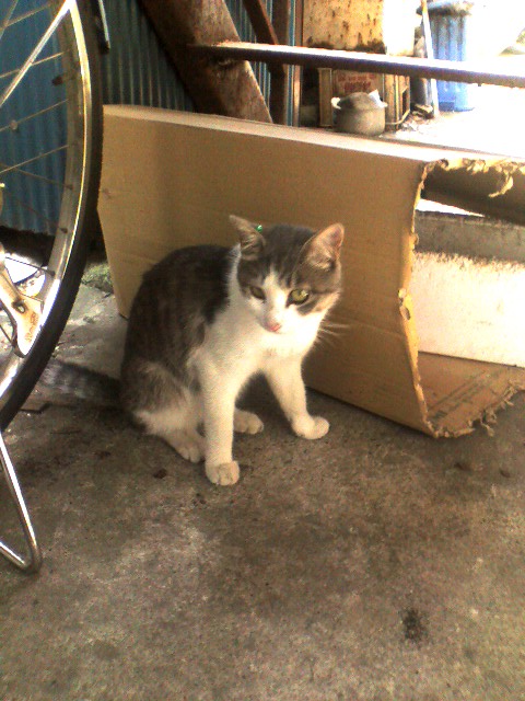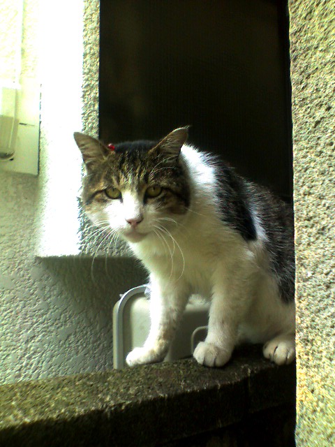 そんなことをしていたら、ゲストの猫さんと遭遇しました。おや、ピアスしてるよ。ほー。