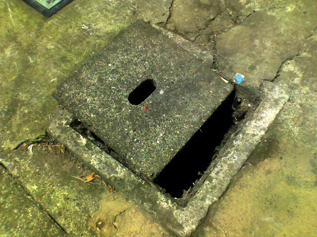 排水溝のブロック蓋を外して、