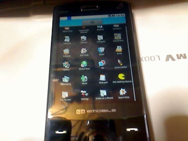 Dialer、Browser、Mapsと美味しそうなソフトが入っていますが、残念ながら電話はかけられません。ネットにも繋がりませんでした。本家でも格闘中のようで、ならばしょうがない。Cameraなんてのも入ってますが、「SDカードを入れてちょ」という表示が出てきて駄目でした。